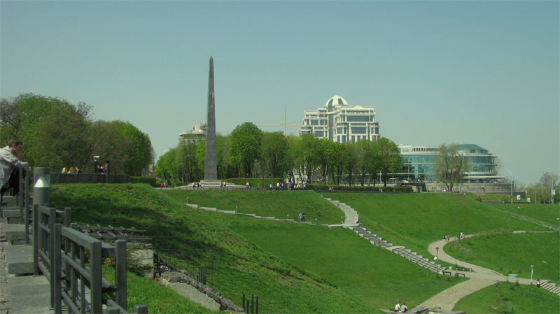 В парке славы для него слишком мало места, масштаб не тот, к тому же рядом находится оживленная городская артерия, которая тоже смазывает восприятие. Вполне понятно, почему было настолько принципиально расположить музей голодомора именно там, где он в итоге был построен. Это судьба киевских холмов — быть местом демонстрации власти.