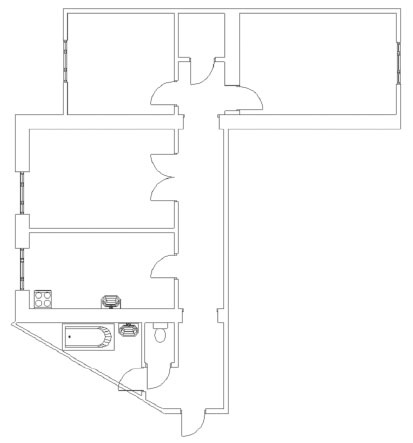 Перепланировка После небольших маневров с перепланировкой квартира абсолютно преобразилась, стала казаться намного больше, просторнее, появилось два дополнительных помещения. Объединением кухни и гостиной получено одно большое открытое пространство. Часть длинного проходного коридора добавили к гостиной, а на месте бывшей кухни появился маленький уютный кабинет для хозяина. Демонтирован простенок между санузлами – получилась одна большая ванная комната, а на месте старой кладовки оборудован еще один гостевой санузел.