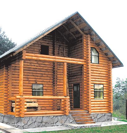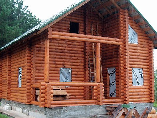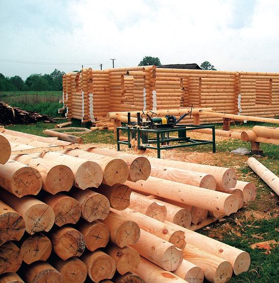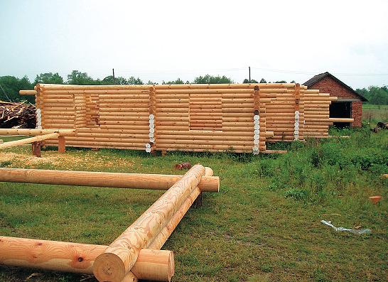 Для заказчика, почти 100% времени проводящего в городских железобетонных джунглях, данные аргументы были более чем убедительны. Кроме того, на участках, соседствующих с его землей, дома были сплошь каменные и кирпичные. И на фоне их деревянный дом — что само собой разумеется — смотрелся бы весьма выигрышно и поистине стал бы визитной карточкой хозяина. И решено было — строить. В качестве строительного материала выбрано оцилиндрованное в заводских условиях бревно. Древесина — сосна.