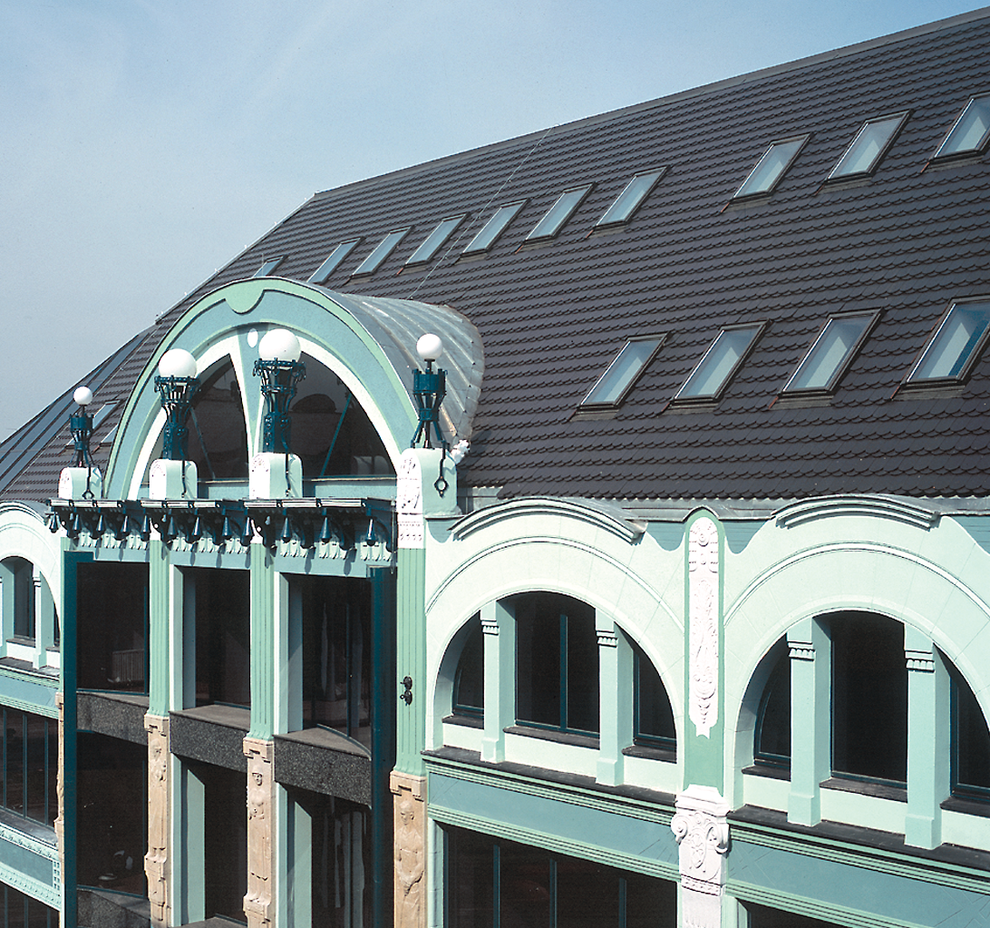 | В архитектуре мансардными называют вертикальные или наклонные окна в скатной крыше. Обычно они устраивались в находящихся под крышей спальных помещениях — дормиториумах, и по-английски до сих пор называются dormer. Надстройка на крыше, защищающая и художественно оформляющая вертикальное окно, именуется люкарной. Этот термин нередко используется как синоним небольших вертикальных мансардных окон. Люкарны могут быть треугольными, прямоугольными, арочными, в виде полусферы; соответствующую форму имеют и их рамы. Обычно люкарны устраивают в скатных крышах. |