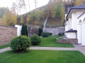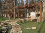 Усадьба, о благоустройстве которой пойдет речь, построена в романском стиле. Массивные каменные стены, узкие окна, высокие башни — все под стать той эпохе. Постройки на участке (хозяйский дом и гостевой) полностью отражают этот стиль. Дом — мощный, монументальный. Гостевой — в виде башни, ведь в Средние века она была неотъемлемой частью любого замка.