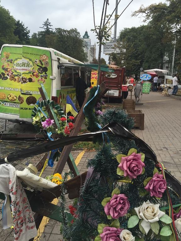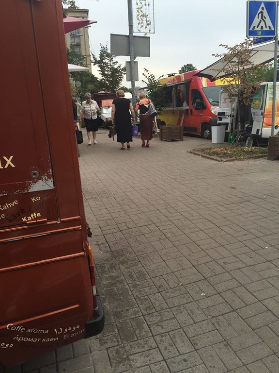 «На Институтской – аллее Героев Небесной Сотни стояло 6 автомобилей (2 буса шаурмы и кондитерки и 4 кофемашины), занимающиеся торговлей перед выходом из станции метро. В том числе в тех местах, где гибли герои», – сообщил Белоцерковец.