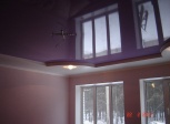 Лаковый натяжной потолок из пленки Германского производителя Lackfolie установленный в гостиной частного дома. Стены и короб выполнены с помощью сухих смесей Knauf.