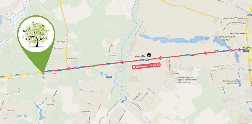Как доехать на общественном транспорте: От Киева Вы можете к нам добраться маршрутным такси №750, №770, №762 (ехать от м. Житомирская или Святошино), остановка с.Мила. На остановке необходимо перейти на противоположную сторону через пешеходный переход и пройти еще около 300м до садового центра. Садовый центр находится возле ресторанного комплекса "Два Бобра".
